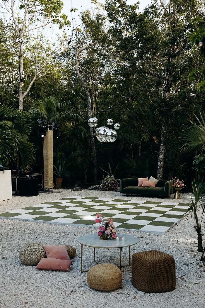 - Dance floor: A chosen dance floor gives guests a protected, stable surface to maneuver on and helps organize the layout of your reception space.