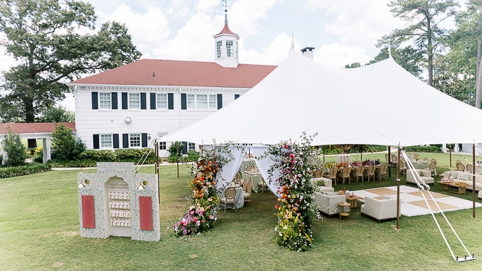- Tents and coverings: Perfect for outdoor celebrations or unpredictable weather. Clear-top tents look magical under the celebs, while draped pole tents create a classic, elegant vibe.